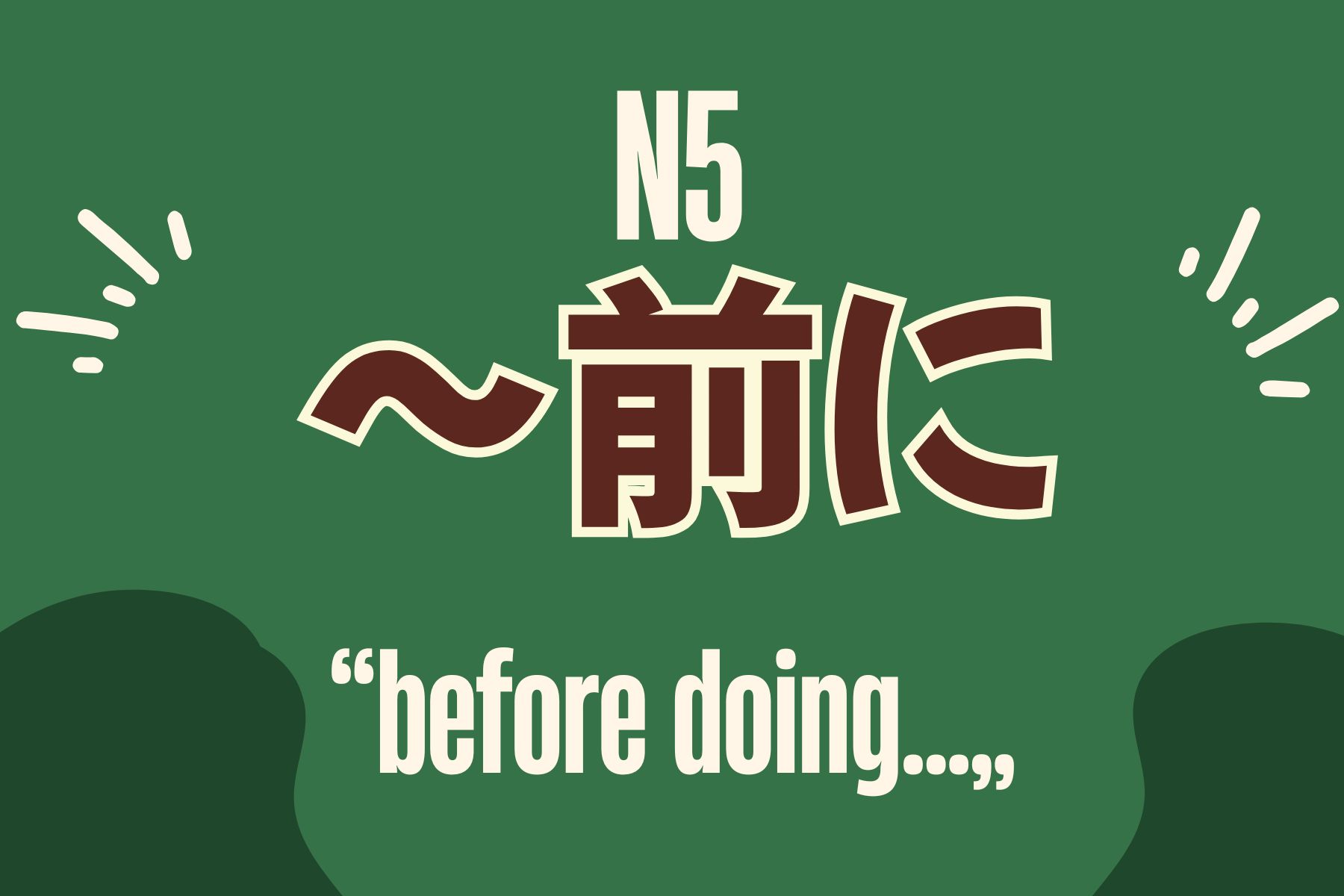 The grammar 「~前に」 (mae ni) means before. Use the dictionary form of verbs or add の to nouns. It’s perfect for expressing sequences like before eating or before class.