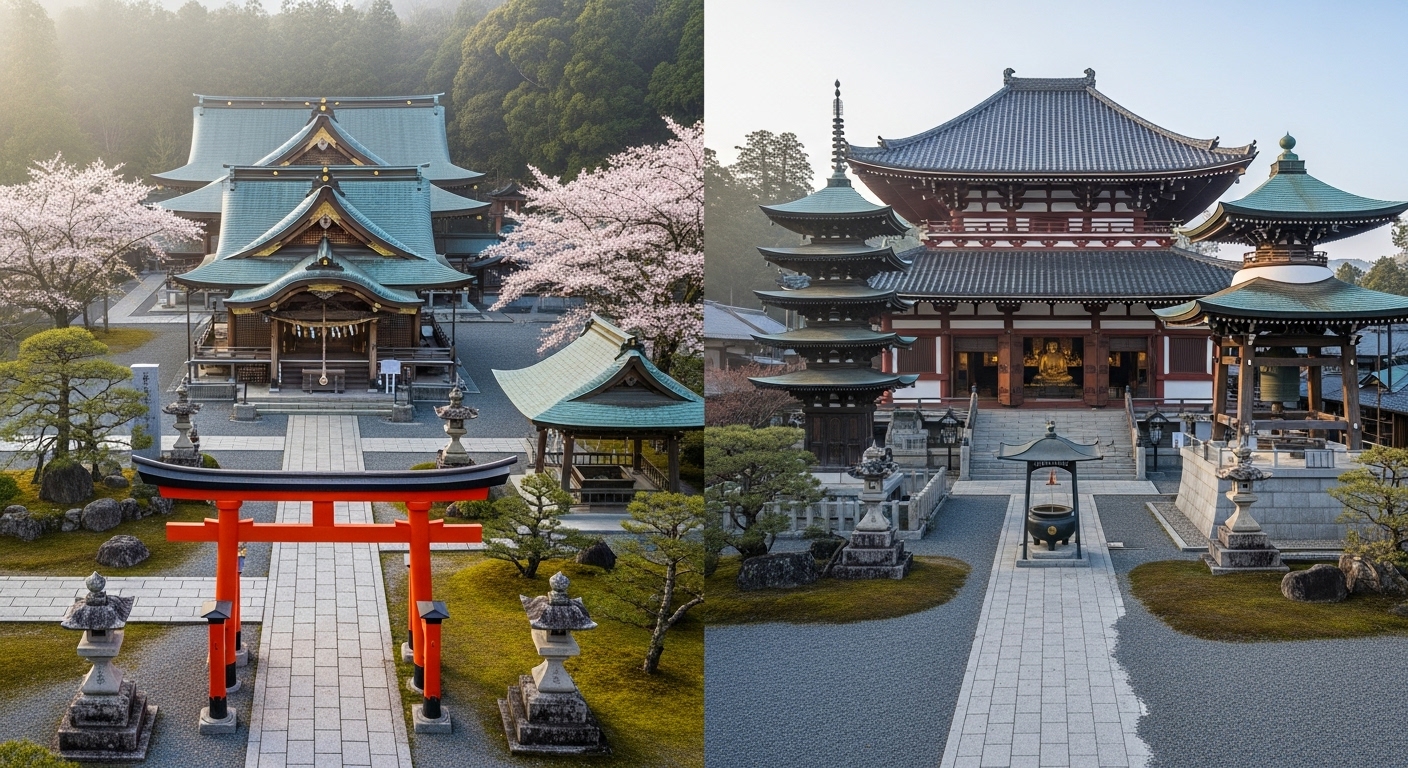 美咲:簡単に言うと、神社は神様を祀る場所で、お寺は仏様を拝む場所だよ。